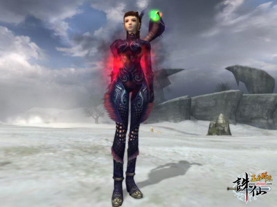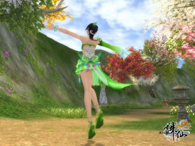 亮眼的绿色是“玉露仙衣”的一大亮点,它让人有种清新的感觉,融进《诛仙》梦幻般的风景中更是犹为惹眼。背部的蝴蝶设计也十分俏丽,仿佛一只翩翩起舞的蝴蝶停歇在这春意盎然的大自然之中,悠闲自在好不快活。这款时装也总能给MM带来无限的好心情,令周遭的气氛变得欢快起来。