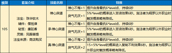 ②施法者为天音职业时,使用此技能后可为“大梵般若”、“大梵般若III”技能充能1层,并清除“大梵般若<玄><煞><禅>”技能的冷却。