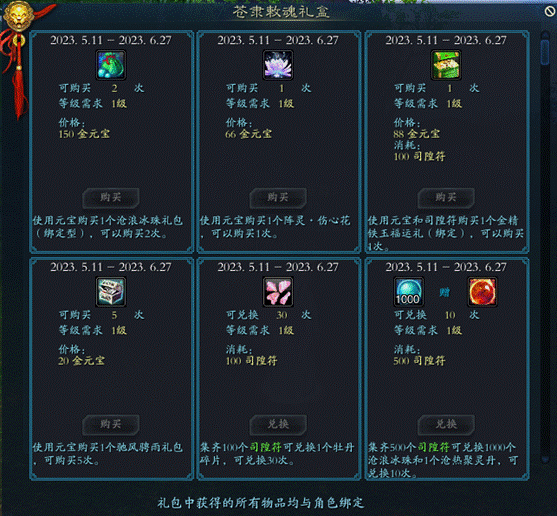 2.活动期间,全地图挂机杀怪有概率获得物品司隍符,使用该物品可在礼盒内兑换对应奖励。
