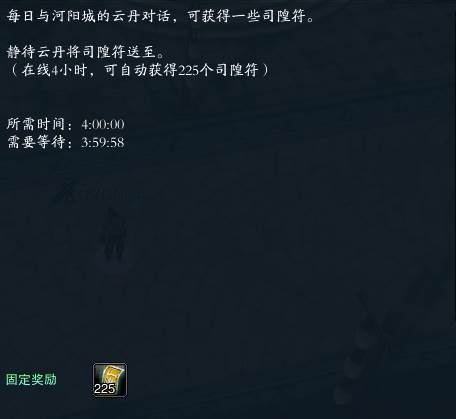 3.活动期间,每日与云丹对话,获得任务,等待4小时后,可获得225个司隍符。 >