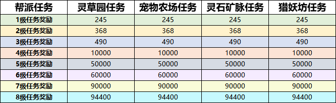 (3)提升“灵草园”、“宠物农场”、“猎妖坊”、“灵石矿脉”建筑可提升帮派成员在完成帮派周常任务时的奖励;将上述建筑等级提升至6级及以上时,可消耗帮派兴旺度开启帮派宝箱。开启对应建筑的帮派宝箱后,帮派成员即可前往对应建筑处开启宝箱,领取奖励。