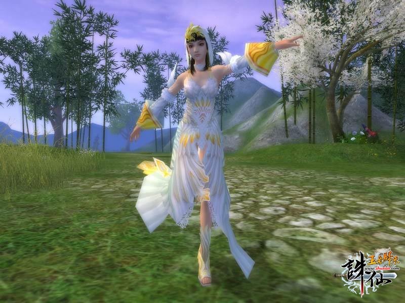 新款服饰总是逃不过MM们的眼睛,凡是新鲜的事物都是具有潮流代表性的,而这一款“黄鸟霓裳”更是夺得了许多MM的亲赖。整套服饰看上去高贵典雅,素雅中透着华丽,白色的衣裙使女生看起来更神圣、更纯洁、更具女人魅力,而额头和袖口点缀的黄色正犹如一只即将腾飞的鸟儿,让人眼前一亮。