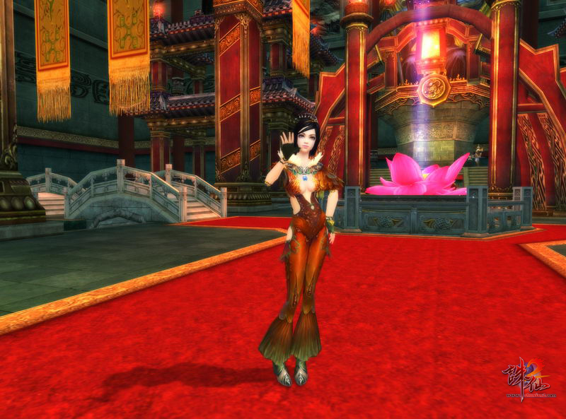 以中国传统的民族理念为指导,以经典中国红、华丽贵族金和纯洁白做搭配,打造经典帅气男装“腾龙”、优雅女装“栖凤”!腾龙装帅气尊贵,龙鳞式样的飞翼般的肩甲,阳刚而富有王者之气!而栖凤装优雅高贵,美丽的凤凰头饰展翅欲飞,裙摆上的流云图更是精致独特!