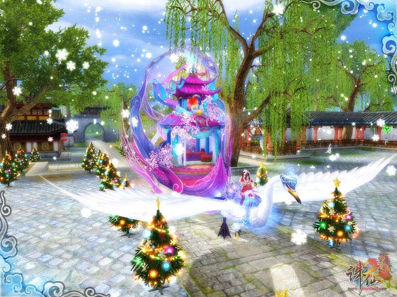 辞旧迎新之际,玄幻世界飘起雪花,五彩缤纷的圣诞树也摆满了河阳城。召唤朋友,驾驭“仙羽琅御”一同前去欣赏美景吧!坐在豪华御辇中,一边赏美景,一边聊天,好不惬意!