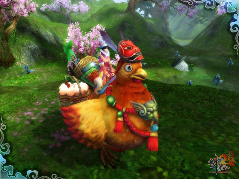 玄幻世界全新飞骑引发众人围观!胖胖的母鸡带着一篮子鸡蛋,抖动小小的翅膀飞起来了!《诛仙2》全新飞骑“看灰机”当选2011新春最拉风飞骑!
