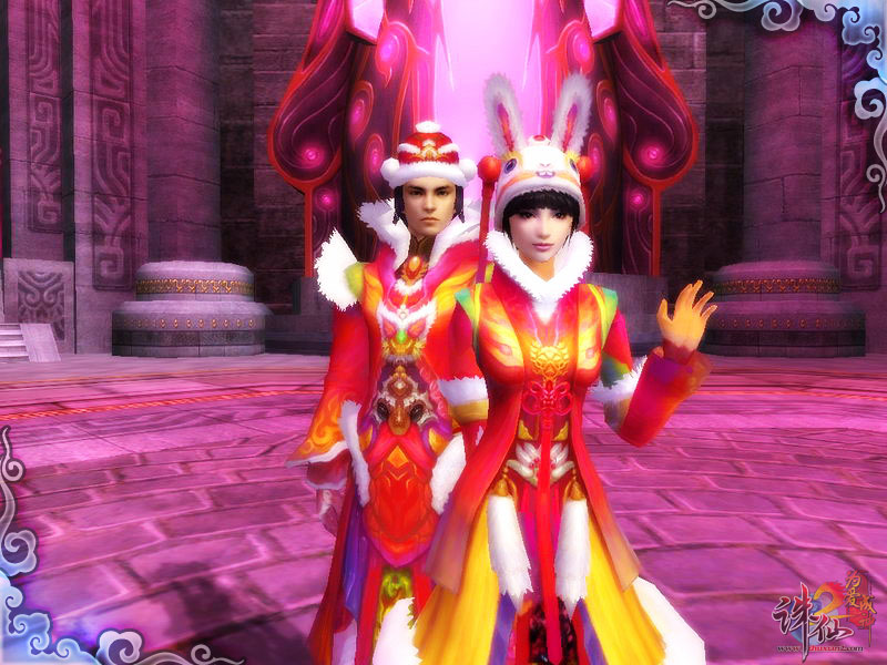 可爱的兔耳帽,蓬松的灯笼裤,2011年贺岁吉服女装打造甜美小公主!小红帽、大红袍,男装时尚迷人。2011年贺岁吉服不仅外形出众,时装所带的技能也是相当给力!清除不利状态、瞬间提速,还有1小时攻击状态加成!让你称霸各大战场!