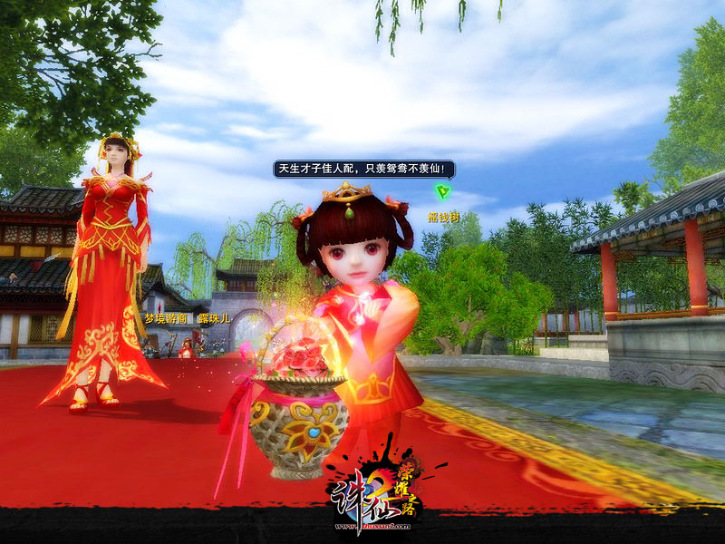 小金童、小玉女为新人送来特殊的祝福!7月19日更新维护后所有服务器每日第9对结婚的新人将获得金童玉女的祝福,他们会在河阳城巡游并洒落【五彩花】,开启【五彩花】即可获得造化珠、金丹、金叶子、金砖、双色喜糖、还有特殊的“金童召唤令”。